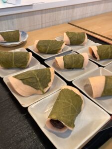 おやつには手作りの桜もち。